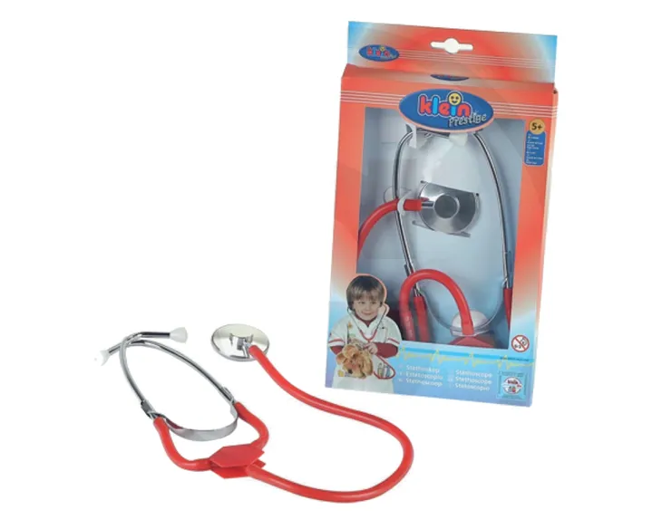 Stetoskop dla małego lekarza z rzeczywistymi funkcjami - działa jak prawdziwy. Zabawka została zrobiona ze srebrnego metalu w połączeniu z czerwoną gumą. Stetoskop, który posiada funkcję realnego odpowiednika, czyli wzmacnia dźwięki, takie jak bicie serca, czy oddech. Dzięki odrobinie realizmu, maluch może poczuć się jak prawdziwy lekarz. Idealny do zabawy w odgrywanie scenek. Stetoskop to idealna zabawka dla twojego dziecka, które chce zostać prawdziwym lekarzem. Jest to również doskonały pomysł na to, aby oswoić malucha ze sprzętem medycznym, z którym spotyka się podczas wizyt gabinecie lekarskim. Wszystkie elementy są oczywiście bezpieczne dla dzieci i proste w użyciu. fartuch lekarski czy właśnie ten stetoskop. Cała seria wizualnie stworzona jest tak, aby mogli się nią bawić zarówno chłopcy jak i dziewczynki.