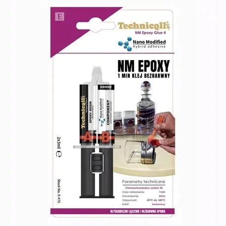 Bezbarwny klej epoksydowy o bardzo szybkim, kilkuminutowym czasie sieciowania.Niezawodny i skuteczny do trwałego klejenia: szkła,porcelany, ceramiki, tworzyw sztucznych (za wyjątkiem PP, PE, PTFE), kamienia, betonu, marmuru, metali i ich stopów, gumy, drewna. Doskonale klei kombinacje materiałowe.