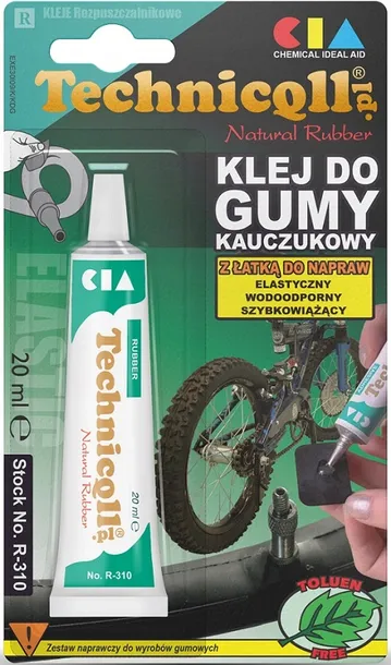 Bardzo elastyczny klej na bazie naturalnego kauczuku. Do łączenia elementów wykonanych z gumy, materiałów powlekanych i gumo-pochodnych. Tworzy mocną i elastyczną spoinę odporną na zmienne warunki atmosferyczne.