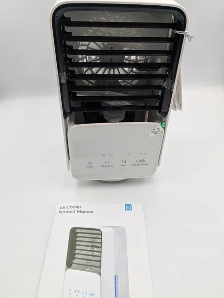 - Wyposażona w zbiornik na wodę o pojemności 700 ml, który zapewnia do 6 godzin działania funkcji chłodzenia, z możliwością dodania kostek lodu dla lepszego efektu chłodzenia.
