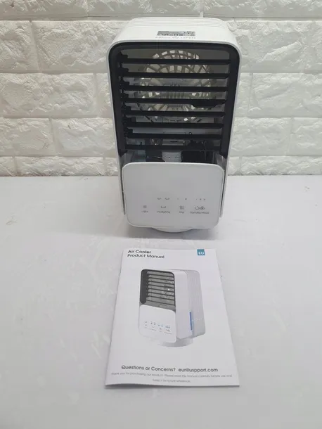 - ❄ Chłodzenie pod wieloma kątami ❄ Ostrze oscylacyjne wentylatora przenośnego mini klimatora można regulować w górę iw dół o 60°, aby lepiej kontrolować kierunek przepływu powietrza. Może również obracać się o 60°/120°, aby zwiększyć natężenie przepływu świeżego powietrza w lewo i w prawo, pozwalając cieszyć się świeżością w dowolnym miejscu i unikając bólów głowy i przeziębień spowodowanych przez długi czas dmuchania w jednym kierunku. )