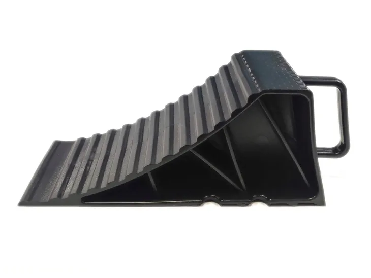 Klin pod koło zabezpieczający przed niekontrolowanym ruchem pojazdu. Wykonany z bardzo trwałego i odpornego plastiku.