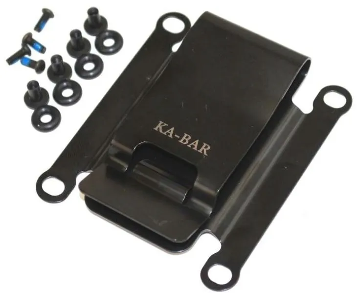 Metalowy klips umożliwiający łatwe i szybkie przymocowanie pochewki noża z serii TDI Knives oraz wybranych modeli Becker Knives firmy Ka-Bar do wewnętrznej lub zewnętrznej strony paska, oporządzenia lub brzegu kieszeni spodni.
