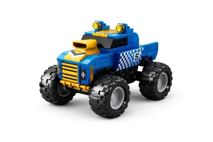 Zestaw klocków konstrukcyjnych umożliwiający zbudowanie terenowego monster trucka w sportowej, wyścigowej stylistyce. Idealny dla dzieci, które uwielbiają duże koła, pojazdy off-road i kreatywną zabawę.