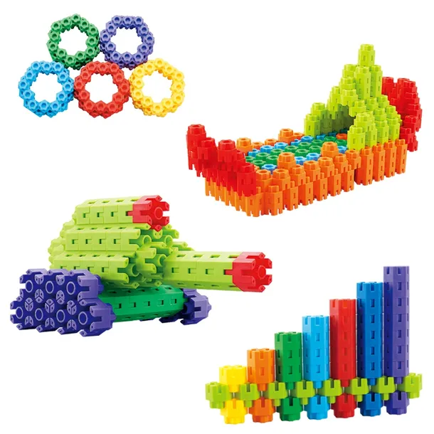 Zabawka rozwija dziecięcą kreatywność, a intensywne kolory klocków zachęcają do tworzenia coraz to trudniejszych konstrukcji.