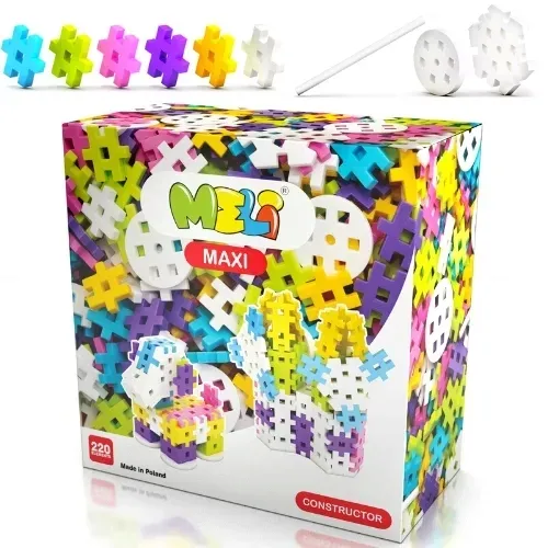 Klocki Meli charakteryzują się nieszablonowymi rozwiązaniami, żywymi barwami oraz stworzone są z elastycznego tworzywa, które jest bezpieczne i przyjazne dla małych rączek dzieci. Dzięki temu zestaw Meli Maxi Constructor Pink zachęca dzieci do żywej zabawy już od pierwszego roku życia.