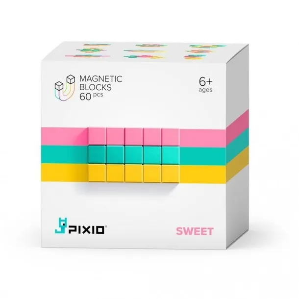 Klocki PIXIO(R) SWEET: kolory na deser | Sweet w kolorze żółtym, różowym i turkusowym uzupełniają się nawzajem jak tęcza gałek lodów na największym rożku w salonie. 60 sztuk klocków w zestawie.