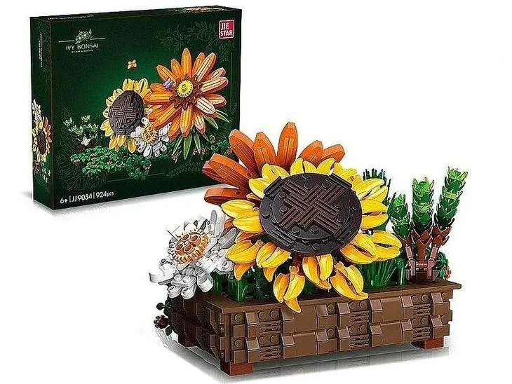 zestaw klocków 924szt, kwiaty w doniczce; 30x24x6cm, Box