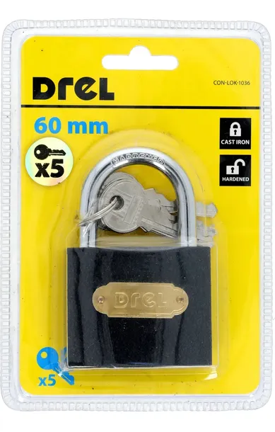 Kłódka 60mm, 5 kluczy, żeliwna