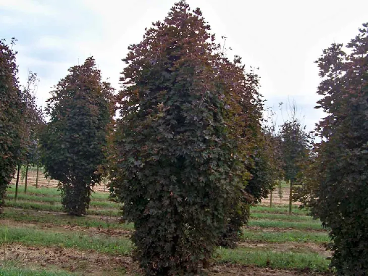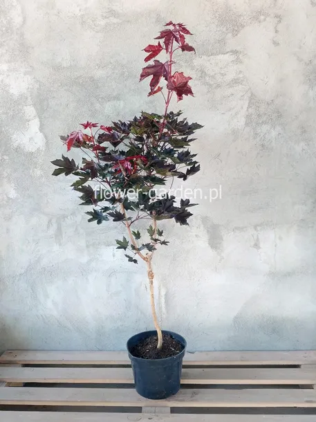 Kolumnowa odmiana klonu pospolitego o zwartej, strzelistej koronie i pięknie wybarwionych liściach. Po dziesięciu latach osiąga ok. 8 m wysokości i 3-4 m szerokości. W razie potrzeby można zmniejszyć jej rozmiary poprzez przycięcie zbyt długich pędów. Główną ozdobą rośliny są duże, błyszczące i intensywnie wybarwione purpurowo-czerwone liście, które pięknie kontrastują na tle innych, zielonych roślin. Purpurowy kolor liści utrzymuje się przez cały sezon wegetacyjny. Jesienią liście stają się bardziej czerwone. Odmiana polecana do sadzenia w parkach, na terenach miejskich, do tworzenia szpalerów wzdłuż ogrodzenia.