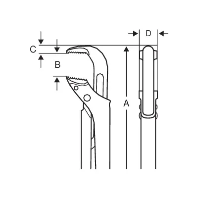 - Klucz do rur, Szwed 90° wyposażony w szeklę zabezpieczającą narzędzie przed wypadaniem