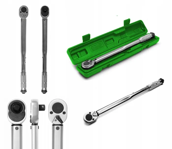 • Z mechanizmem zapadkowym umożliwiającym normalne dokręcanie oraz kontrolę wartości momentu dokręcania. przestawny kierunek działania grzechotki pozwala na pracę w obu kierunkach. lecz kontrola wartości dokręcania jest tylko przy obrotach prawych,