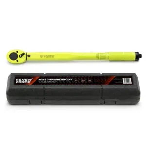 Ten klucz dynamometryczny 1/2″ został zaprojektowany do precyzyjnego dokręcania połączeń śrubowych wymagających ściśle określonego momentu obrotowego. Zakres roboczy 28–210 Nm umożliwia zastosowanie przy kołach samochodowych, elementach zawieszenia, silnika oraz konstrukcjach mechanicznych. Dokładność ±4% pozwala na bezpieczną i powtarzalną pracę zgodną z zaleceniami producentów pojazdów i urządzeń RENEW FORCE®.