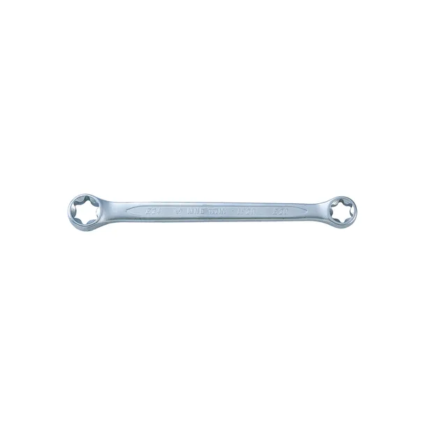 Klucz oczkowy gwiazdkowy dwustronny E7 x E11, wykonany z wysokiej jakości stali chromowo - wanadowej, chromowany.