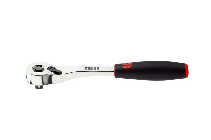 Dźwignia zmiany kierunku działania grzechotki jest zagłębiona w metalowym korpusie pokrętła - ryzyko jej uszkodzenia przy pracy jest zminimalizowane.
