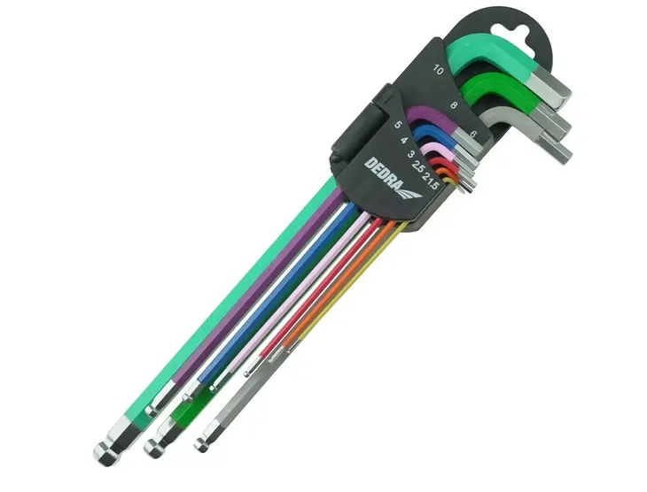Zestaw kluczy sześciokątnych z kulką extra-długich DEDRA 06F215 zestaw 9szt, kolor 1.5-10mm, S2