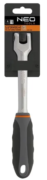 Grzechotka 1/4", 360°, 72T 08-540, NEO to niezbędne wyposażenie każdego warsztatu i garażu, w którym działa profesjonalny mechanik albo majsterkowicz. Grzechotka jest specjalistycznym narzędziem, przeznaczonym do dokręcania trudno dostępnych śrub oraz nakrętek. Dodatkowym udogodnieniem jest obrotowa głowica, która ułatwia dokręcanie elementów, które są ułożone pod nietypowym kątem i w trudno dostępnych miejscach. System blokowania nasadki, daje pewność, że nie spadnie ona z grzechotki w trakcie pracy.