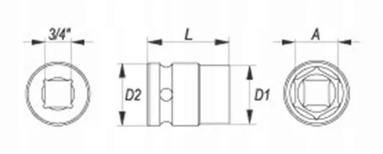 Nasadki są kompatybilne z kluczami o przekroju trzpienia 3/4 cala.