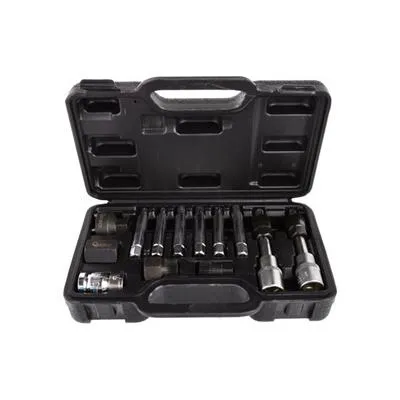 Zestaw kluczy do montażu i demontażu alternatorów. Klucze wykonane zostały z wysokogatunkowej stali chromowo-wanadowej CrV, dzięki czemu są wytrzymałe i odporne na uszkodzenia. Klucze umożliwiają jednoczesne odkręcanie śruby mocującej koło pasowe (za pomocą odpowiedniego bitu) oraz przytrzymywanie koła ze sprzęgłem (za pomocą specjalistycznej nasadki).