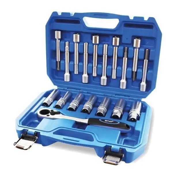 18-elementowy zestaw narzędzi do amortyzatorów BITUXX to idealne rozwiązanie do bezpiecznego i profesjonalnego montażu oraz demontażu amortyzatorów w samochodach osobowych i dostawczych.