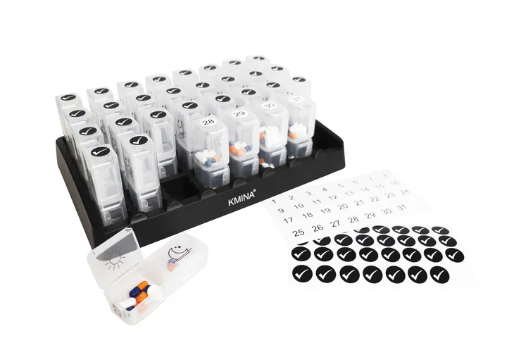 ♥ Praktyczne: miesięczne pudełko na tabletki jest przeznaczone dla osób, które codziennie przyjmują dużą liczbę tabletek i potrzebują lepszej organizacji. Ten model umożliwia przygotowanie miesięcznych tabletek tylko raz, aby uniknąć pomyłek.