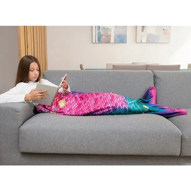 Design uwzględniający rybie łuski, połyskujące kolory i efekt 3D nadają produktowi realistyczny wygląd. Koc jest zaszyty od spodu zatem możecie go włożyć jedynie od góry i korzystać z niego na zasadzie śpiwora. Idealnie sprawdzi się na ciepłe letnie wieczory jako lekki, przewiewny ale jednocześnie chroniący przed zmarznięciem materiał.