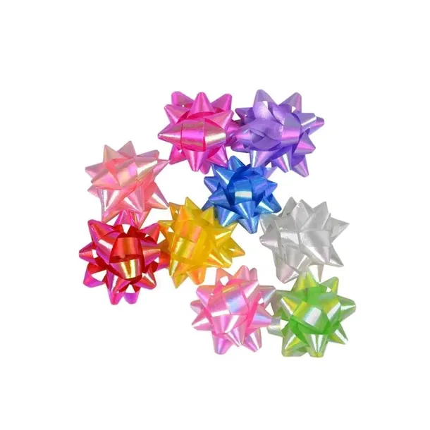 Kokardki dekoracyjne w różnych kolorach. Każda rozetka zawiera element samoprzylepny ułatwiający natychmiastowe przymocowanie do powierzchni. Wykonane z tworzywa sztucznego. Wymiar pojedynczej kokardy to 2,5 cm. W opakowaniu znajduje się 9 sztuk.