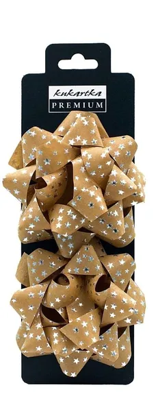 Zestaw 2 papierowych kokard ozdobnych do naklejenia ZKO-001.Kokardy wykonane z papieru kraft uszlachetnione dodatkowo metalizowanymi foliami.Średnica kokardy - 10,16 cm