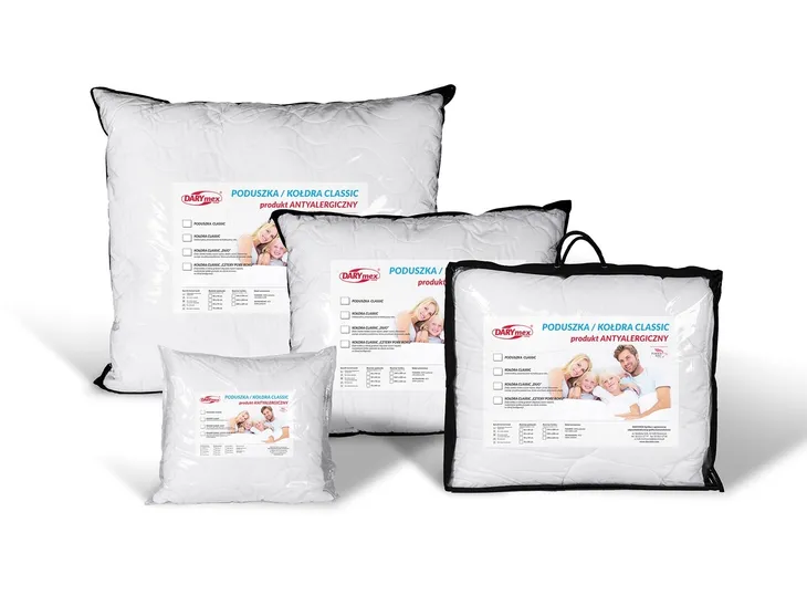 Wyroby w poszyciu z aksamitnej tkaniny z delikatnych mikrowłókien. Tkanina ta jest gęsto tkana i kalandrowana, aby zapobiec migracji wypełnienia i uniemożliwić wnikanie zanieczyszczeń do wnętrza produktu, a jednocześnie niezwykle lekka i przewiewna. Nie zawiera sztucznych barwinków i szkodliwych substancji chemicznych, dzięki czemu jest bezpieczna nawet dla alergików. Zastosowane wypełnienie - specjalny skład mieszanki włókien HCS zapewnia niezwykłą sprężystość oraz odporność na zgniatanie. Wypełnienie jest lekkie i hypoalergiczne. Zapewnia odpowiednią cyrkulację powietrza i odprowadzanie wilgoci, a także nie traci swoich właściwości po praniu. Włóknina w kołdrach wyróżnia się specjalnym wielokierunkowym splotem włókien, co zwiększa jej trwałość. Powietrze gromadzące się w kanalikach, wewnątrz włókien, doskonale izoluje i zwiększa poczucie ciepła. Gruba i wytrzymała otoczka silikonowa każdego pojedynczego włókienka, w połączeniu z jego spiralnym kształtem skutkuje odpornością na plątanie i zbijanie się wypełnienia. Dodatkową zaletą jest łatwe pranie i suszenie w warunkach domowych. KOŁDRA 4 PORY ROKU– dwuelementowa, zestaw dwóch kołder o różnej grubości spinanych napami – kołdra ultralekka idealna na upalne lato oraz kołdra całoroczna idealna na wiosnę i jesień; po połączeniu ich obu powstaje bardzo ciepła kołdra, idealna na mroźną zimę; do użytku razem lub oddzielnie, zapewnia komfort snu o każdej porze roku i w każdej temperaturze otoczenia, daje możliwość regulowania grubości i dopasowania komfortu termicznego do specyficznych upodobań użytkownika, doskonały zestaw dla partnerów lubiących spać w odmiennych warunkach cieplnych, gramatura 150+300g/m2.