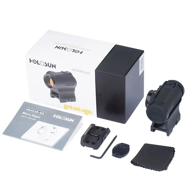 Kolimator HE403R-GD Gold Dot to lekki i poręczny celownik z punktem celowniczym w postaci złotej kropki 2 MOA. Kolimator ten ma w zestawie dwa montaże w komplecie: niski i wysoki 1/3 Co-Witness. Dzięki uniwersalnej, niewielkich rozmiarów konstrukcji HE403R-GD może być zamocowany na różnych rodzajach broni, takich jak strzelby, pistolety, karabinki pneumatyczne oraz kusze.
