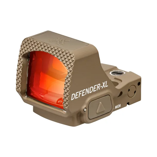 Vortex Defender-XL 5 MOA Tan ma wysokiej jakości soczewkę pokrytą wielowarstwowymi powłokami antyrefleksyjnymi, które zapewniają wysoką transmisję światła oraz czysty i ostry obraz pozbawiony błędu paralaksy. Celownik wyróżnia się nie tylko jedną z największych soczewek w swojej klasie, ale także asferycznym profilem optyki. Zapewnia to krystaliczną ostrość obrazu nie tylko w centrum, ale również na obrzeżach. W rezultacie uzyskujemy jasny wyraźny obraz celu i możemy komfortowo strzelać także przy słabym oświetleniu. Znak celowniczy to czerwona kropka 5 MOA, która idealnie sprawdza się podczas strzelania w stresujących sytuacjach, zawodach IPSC oraz PIRO.