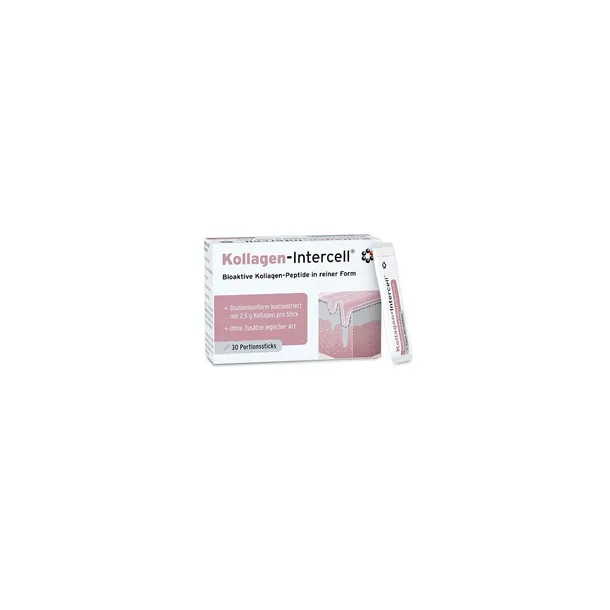 Kollagen-Intercell zawiera 100% peptydów kolagenowych, fragmentów kolagenu, które są lepiej przyswajalne dla organizmu niż standardowe pełne białko.1,2 Kolagen jest składnikiem skóry, kości, mięśni i ścięgien. Niestety wraz z upływem lat zmniejsza się jego ilość wytwarzana przez organizm.
