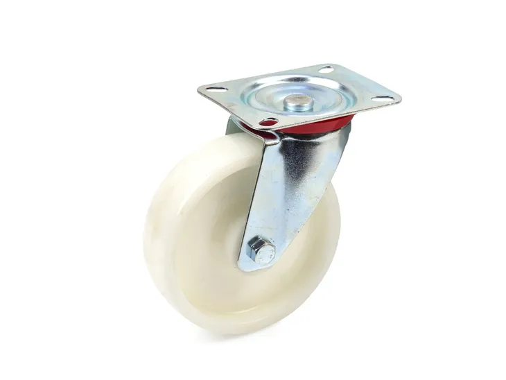 Koło obrotowe o średnicy 125mm. Koło w całości wykonane z wytrzymałego tworzywa polipropylenowego (PP), które jest odporne na czyszczenie chemikaliami, kwasami, alkoholem i wodą.