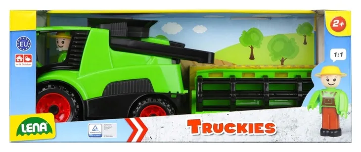 Kolorowy kombajn wyprodukowany został z osiami ze stali ocynkowanej i otwieraną kabiną kierowcy. Funkcja sita z ruchomą rurą zbożową, kompatybilna z przyczepami Truckies. Kombajn to zabawka idealnie nadająca się do piaskownicy lub do zabawy w domu, czy przedszkolu. Zabawka idealna dla chłopca, który marzy o swoim własnym sprzęcie rolniczym! Przeznaczona dla dzieci powyżej 2 lat. W zestawie pojazd kombajnu z figurką rolnika. Zabawka jest w pełni funkcjonalna mechanicznie. Zabawki z tej serii produkowane są z wysokiej jakości materiałów o dużej wytrzymałości mechanicznej. Ich zaletą są piękne, żywe kolory odporne na blaknięcie. Ten sprzęt idealnie sprawdzi się w piaskownicy, na plaży, na placu zabaw oraz w domu.