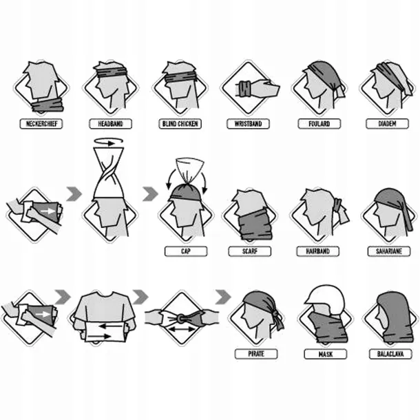 Wielofunkcyjną chustę Buff możesz nosić m.in. jako czapkę, chustę, opaskę, kominiarkę czy szalik.