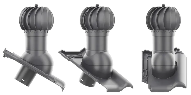 Dodatkowa nasada obrotowa zwiększa ciąg w wentylacji i ogranicza możliwość wystąpienia ciągu wstecznego.