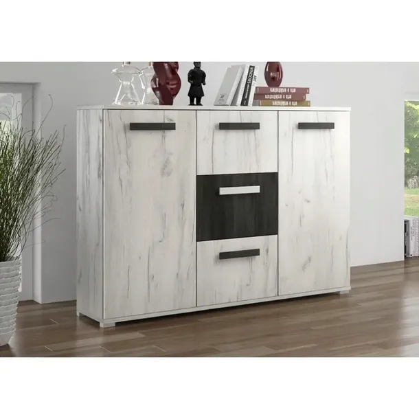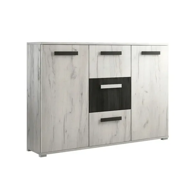Masz wszystko czego potrzeba, by sprostać najwyższym wymaganiom. Po pierwszy prosty, nowoczesny design. Wygodne szerokie uchwyty w kształcie prostokątów. 2 szafki z drzwiami uchylnymi, w których znajdziemy aż 6 równomierne zaprojektowanych przestrzeni na przedmioty codziennego użytku. Nie zapominamy też, że funkcjonalna komoda do salonu musi posiadać szuflady, to bez wątpienia standard wzornictwa 21 wieku. Model Crown zawiera 3 szuflady o takich samych wielkościach. Dzięki symetrycznej formie i unikalnych odcieniach frontów zyskujesz designerski dodatek, które będzie godnie zdobił Twoje wnętrze.