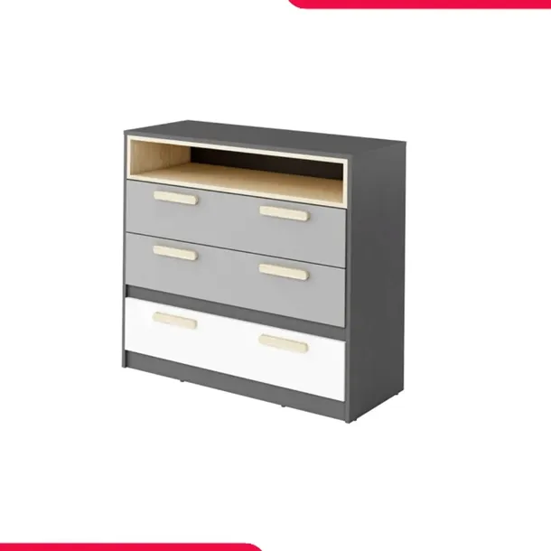 Funkcjonalna i stylowa komoda z kolekcji PERSEFONA, wyposażona w trzy pojemne szuflady oraz praktyczną wnękę. Komoda doskonale sprawdzi się w pokoju młodzieżowym, oferując miejsce do przechowywania oraz przestrzeń na dekoracje czy codzienne przedmioty. Nowoczesne wzornictwo i estetyczna kolorystyka wprowadzą do wnętrza świeżość i ład.