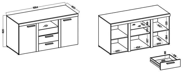 Wymiary szer 156,4 cm , wys 80 cm , gł 40,3 cm