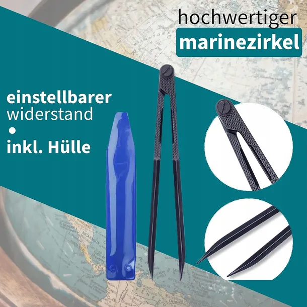 Wysokiej jakości kompas o długości boku 18 cm, w zestawie etui. Idealny do przygotowania licencji na prowadzenie łodzi sportowej.