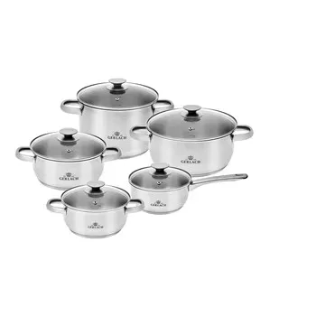 Parametry produktuWymiary naczynia: 52 x 29 x 29 cmMateriał wykonania: Stal nierdzewna, Szkło hartowaneMożna myć w zmywarce: TakCechy dodatkowe: Powłoka łatwa w czyszczeniu, Miarka pojemności wewnątrz naczynia, Trójwarstwowe dno, Nienagrzewające się uchwytyKolor: SrebrnyDo stosowania w: Kuchniach gazowych, Kuchniach indukcyjnych, Kuchniach elektrycznych, Kuchniach ceramicznych, PiekarnikachOkres gwarancji: 2 lat (rok)Waga brutto: 5,95 kgKod CN: 7323 93 00Rodzaj produktu: Rondel, Pokrywka, GarnekLiczba opakowań konsumenckich: 36 szt.Wymiar opakowania (SxWxG): 520 x 290 x 290 mmTyp opakowania konsumenckiego: KartonMaksymalna liczba warstw na palecie: 3 warstw (warstwa)Zawartość zestawu: Rondel + pokrywka ø 16 cm - 1.0l, garnek + pokrywka ø 18 cm – 1.5l, garnek+pokrywka ø 20 cm - 2.0l, garnek+pokrywka ø 24 cm - 4.0l garnek+pokrywka ø 22 cm – 5.0l.Wysokość palety: 1,8 mLiczba warstw na palecie: 3 warstw (warstwa)Typ opakowania pierwszego rzędu: KartonWaga jednostkowa brutto: 5,95 kgKrótki opis marketingowy: Garnki first – gotuj z łatwością i przyjemnościąTyp opakowania dla jednostki handlowej niższego poziomu (konsumenckiego): KartonLiczba opakowań pierwszego rzędu na palecie: 18 op. zb. (DU)Liczba opakowań pierwszego rzędu na warstwie palety: 6 op. zb. (DU)