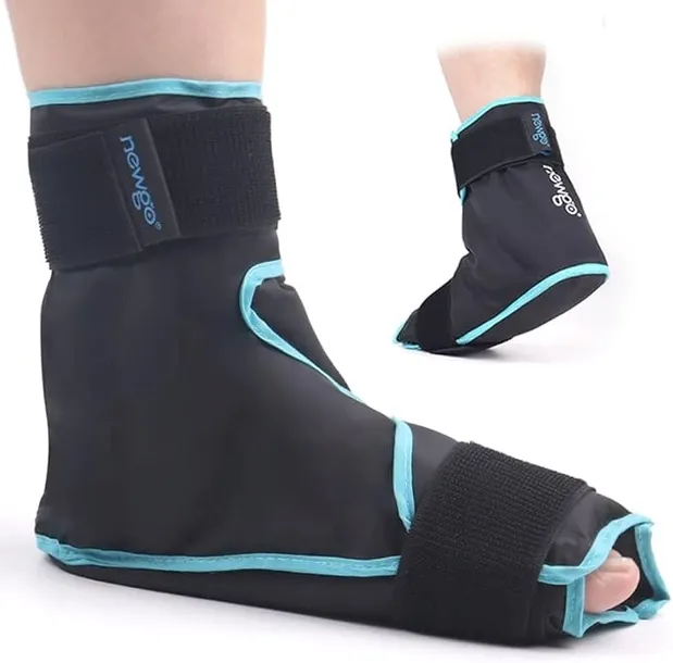 - Elastyczne i uniwersalne dopasowanie: worek na lód na stopy został zaprojektowany tak, aby pasował zarówno do lewej, jak i prawej stopy kobiet i mężczyzn. Wyposażone w elastyczny pasek zapewniający pewne zabezpieczenie okładu lodowego wokół stopy i kostki, co umożliwia zakładanie bez użycia rąk i pełny zakres ruchu. Ortezy stawu skokowego ice można używać w pozycji siedzącej, leżącej lub stojącej. Okład lodowy na stopy pozostaje elastyczny po zamrożeniu i łatwo dopasowuje się do kształtu stopy, zapewniając ukierunkowaną ulgę.