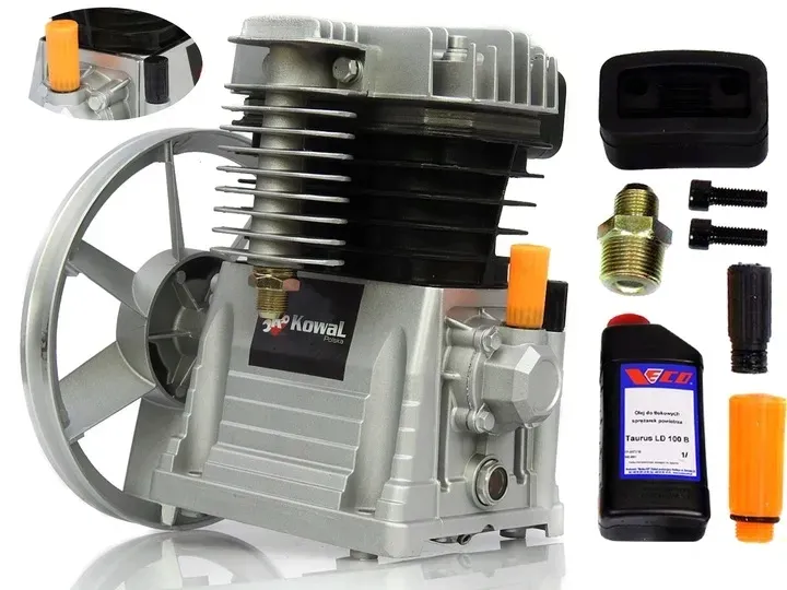 Sprężarka KowaL Polska 2070 wykonana jest z wysokiej jakości materiałów, gwarantujących niezawodność i długotrwałe użytkowanie. Żeliwne cylindry oraz zastosowanie oleju sprężarkowego LD-100 zapewniają bezproblemową eksploatację przez wiele lat.