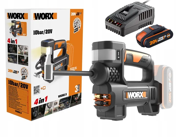 Kompresor akumulatorowy pompka 4w1 WORX WX092 20V 10BAR LED + Akumulator