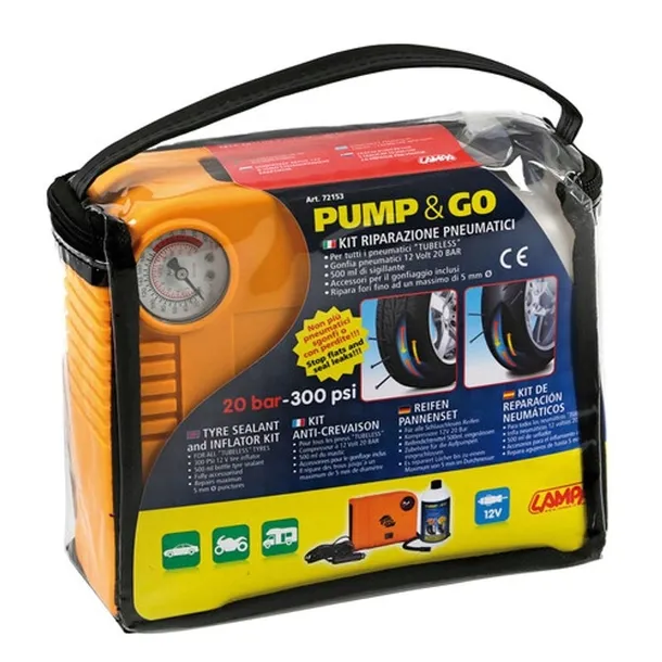 ZESTAW NAPRAWCZY DO KÓŁ KOMPRESOR Z PŁYNEM 20 bar RENOMOWANEJ WŁOSKIEJ MARKI LAMPA