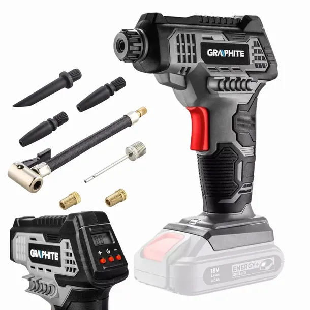 1. Kompresor akumulatorowy Energy+ 18V, wyświetlacz LCD, GRAPHITE GD05 bez akumulatora: 58g041