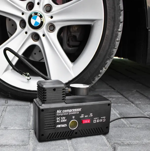 KOMPRESOR SAMOCHODOWY 12V/230V POMPKA DO KÓŁ MATERACY ELEKTRYCZNA SPRĘŻARKA