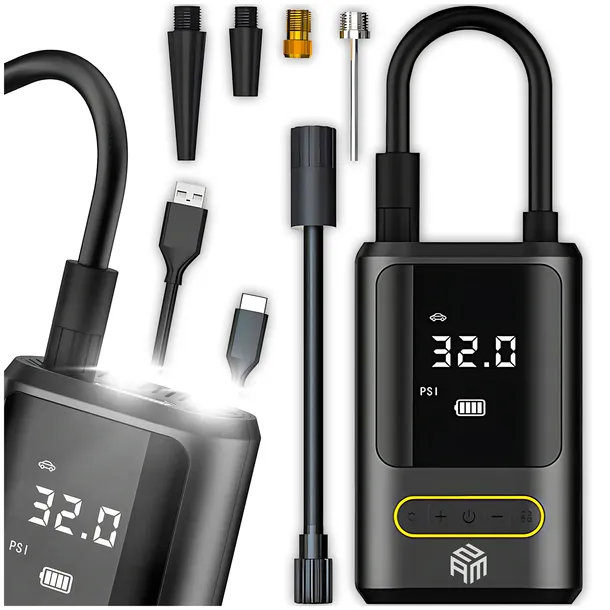 ✅ Nie daj się zaskoczyć przebitej oponie ani niesprawdzonemu ciśnieniu! Kompresor bezprzewodowy to kompaktowe, wydajne i wielofunkcyjne urządzenie, które zmieści się w każdym schowku. Dzięki 150 PSI, baterii 2x2000mAh, manometrowi cyfrowemu, funkcji AUTO-STOP i latarce LED z trybem SOS masz wszystko, czego potrzebujesz w nagłych sytuacjach. Ładowanie Type-C zapewnia szybki powrót do pełnej gotowości, a korpus ze stopu aluminium gwarantuje trwałość na lata.