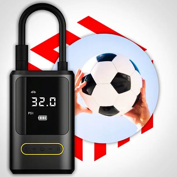 ✅ Obsługa kompresora jest niezwykle prosta, dzięki zaledwie pięciu przyciskom. Umożliwiają one ustawienie pożądanego ciśnienia, zmianę jednostki miary (Bar, PSI, KPa, Kg/cm²), a także sterowanie latarką oraz włączanie i wyłączanie urządzenia. Za pomocą przycisków +/- bez trudu wybierzesz odpowiednie ciśnienie, co sprawia, że korzystanie z mini kompresora jest wygodne i intuicyjne.