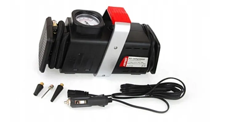 - dołączono 2 wymienne adaptery, które umożliwiają pompowanie opon samochodowych, motocyklowych, rowerowych, zaworów pontonów, materacy, piłek itp.